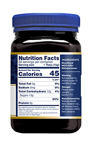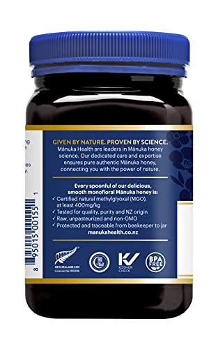 Specification: Manuka Health – Manuka Honing MGO 400 + 500 g – 100% puur uit Nieuw-Zeeland met gecertificeerd methylglyoxal-gehalte