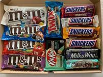 Speciaal voor jou geimporteerd! Een 12-delig assortiment USA chocolade repen, je ontvangt de volgende varianten: M&M’s Fudge Brownie 40 Gram M&M’s Peanutbutter 46 Gram M&M’s Pretzel 32 Gram M&M’s White 42 Gram Milky Way Midnight 50 Gram Milky Way Salted Caramel 44 Gram Snickers Almond 50 Gram Snickers Peanut Brownie 50 Gram Snickers White 45 Gram Twix Cookiy & Cream 39 Gram Kit Kat Duo Mint & Dark Snickers Peanutbutter Squares 50 Gram