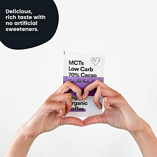 MEER ENERGIE EN FOCUS – Funky Fat choc zit boordevol extra MCT’s die gewichtsverlies, langdurige energie en mentale helderheid bevorderen. De repen pure chocolade zijn ook glutenvrij en ideaal voor mensen met diabetes.