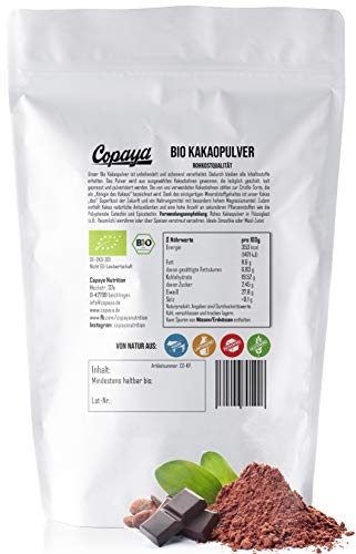 Ons ruwe biologische cacaopoeder komt uit Peru, is onbehandeld, zonder suiker en voorzichtig bij een temperatuur van minder dan 42 °C verwerkt. Daardoor blijven alle ingrediënten behouden. Het poeder wordt gewonnen uit geselecteerde cacaobonen die alleen geschilderd, koud geperst en gepoederd worden. De door ons gebruikte cacaobonen behoren tot de Criollo-soort, die als “koningin van de cacaos” wordt genoemd. Dankzij het unieke gehalte aan mineralen is ruwe cacao “das” superfood van de toekomst en een voedingsmiddel met een bijzonder hoog magnesiumgehalte. Bovendien bevat cacao natuurlijke antioxidanten en een hoog aantal secundaire plantenstoffen zoals de polyfenolen catechine en epicatechine.