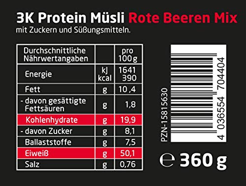 Specification: Layenberger 3K Protein Muesli Rode Bessen Mix, 360 g