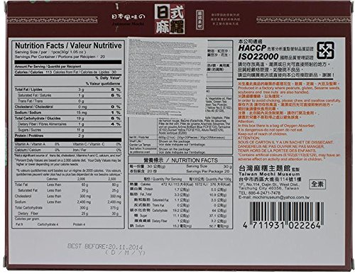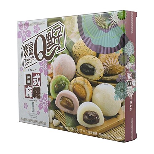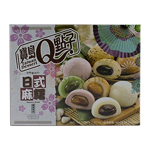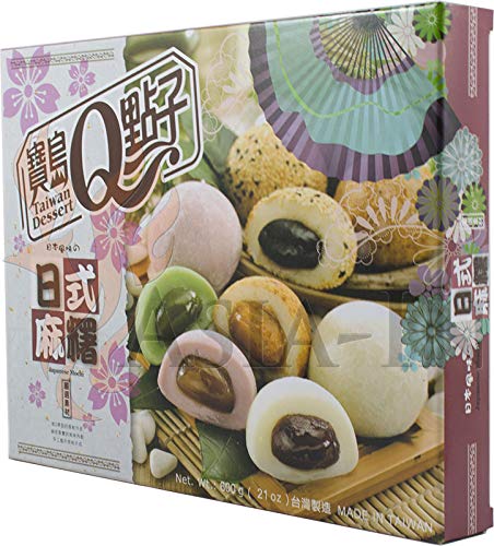 Specification: Japanse Mochi-mix (groene thee, rode bonen, pinda’s, sesam, ube / rijstcake 20 x 30 g, 600g